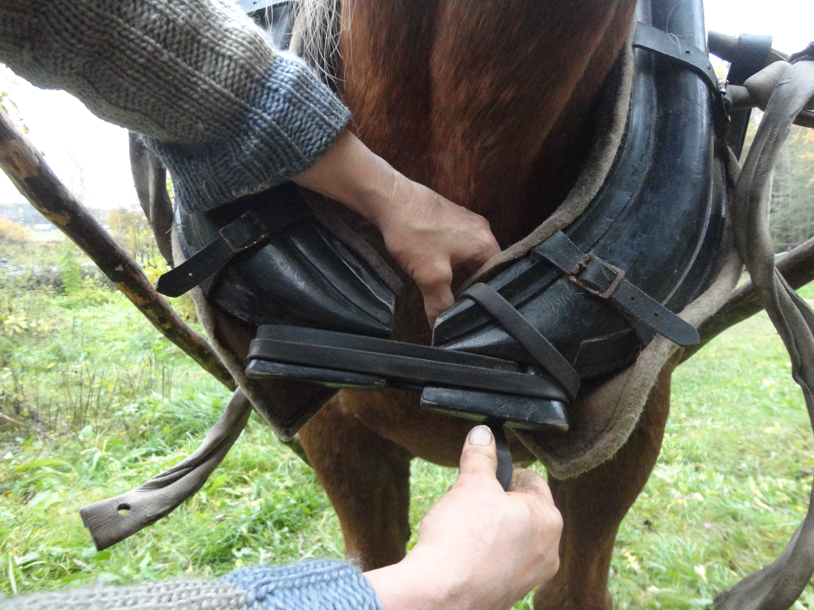 Rinnustin lukitaan laittamalla ensin kierros längen ympäri. (Jos remmin on lyhyt, voidaan siirtyä suoraan seuraavaan kuvaan.)