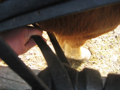 4. Voit myös kiristää alaremmillä yläremmiä näin, jottei se jää löysäksi. Jos hevonen ei ole tottunut nojaamaan länkiin tai se liikkuu valjastuksen aikana, yläremmi voi löystyä.