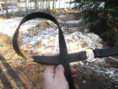 1. Tee ensin lenkki aisaremmin puoleen väliin vasemmalle puolelle niin, että vapaa pää tulee remmin päältä.