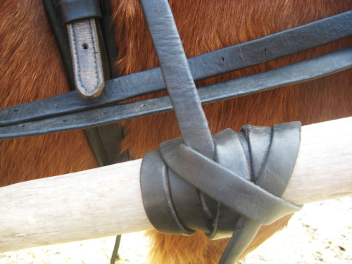 2. … ja kieritä sitten aisan ympäri vuoroin ylös lähtevän aisaremmin oikealta ja vasemmalta puolelta ja pujota lopuksi remmin pää edellisen kierroksen alta.