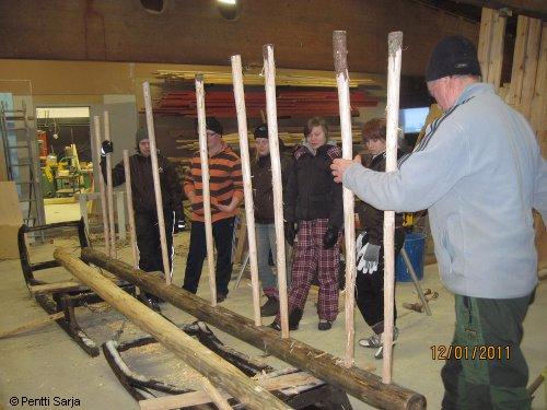 Pohjapienojen väliset mitat keulasta alkaen on 18cm, 55cm, 60cm, 80cm, 60cm, 20cm, 46cm ja 20cm. Jos takareki on hyvin pitkä voi vielä lisätä yhden pienan kaidepuun pituudesta riippuen 60-80 cm:n päähän.