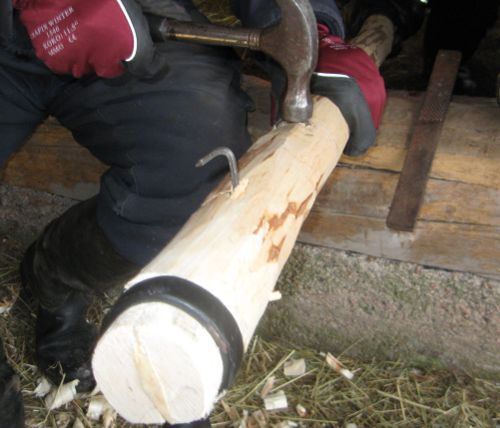 15. …lyödään taas toiselta puolelta naulat loppuun asti, jonka jälkeen kotkaukset lyödään aisan sisään.