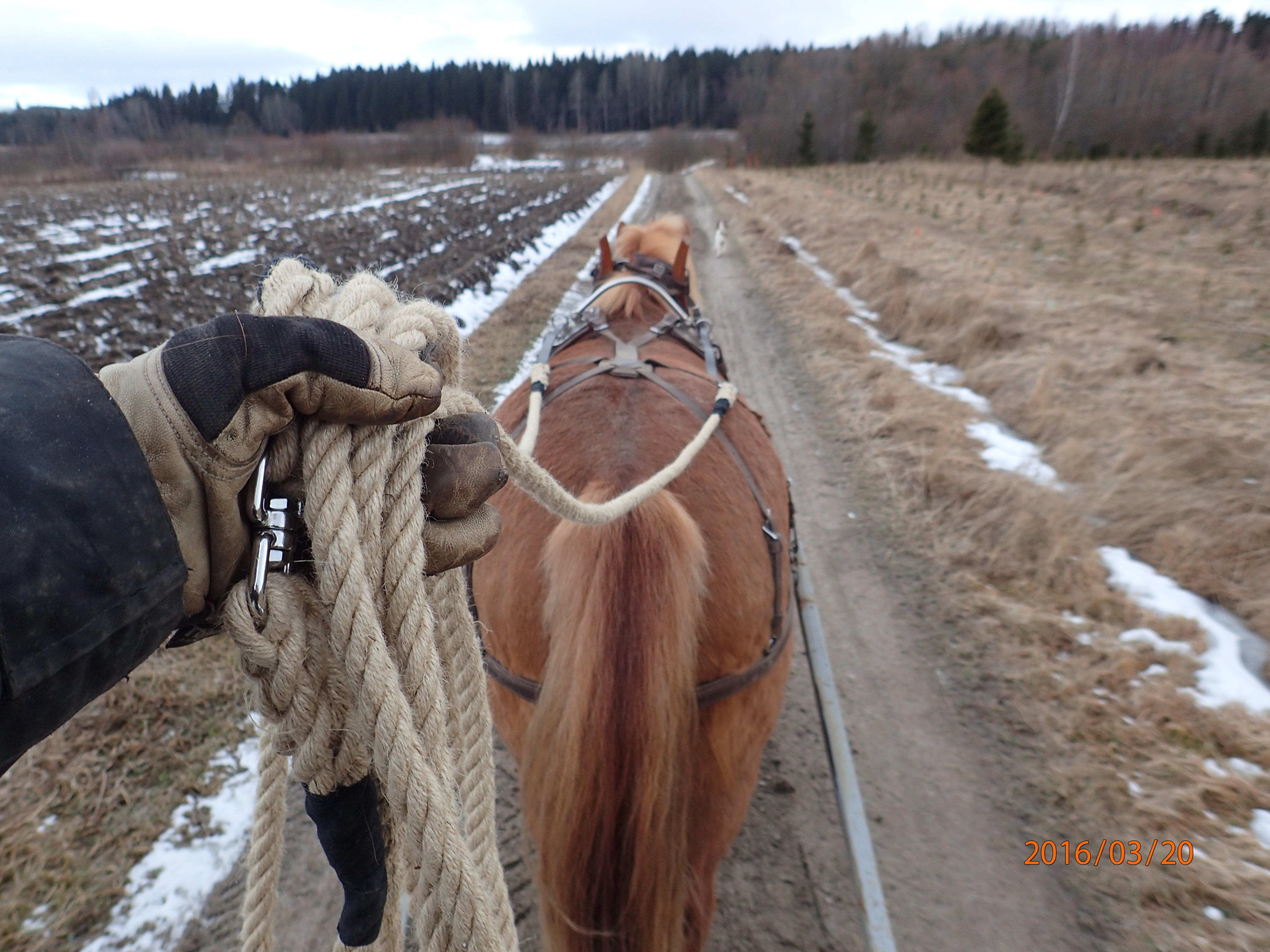 Meidän ”työajomme” taitaa ammattilaisille näyttää aika lailla leikiltä,kun ajamme metsäkärryillä muutamaa rankaa kotiin.