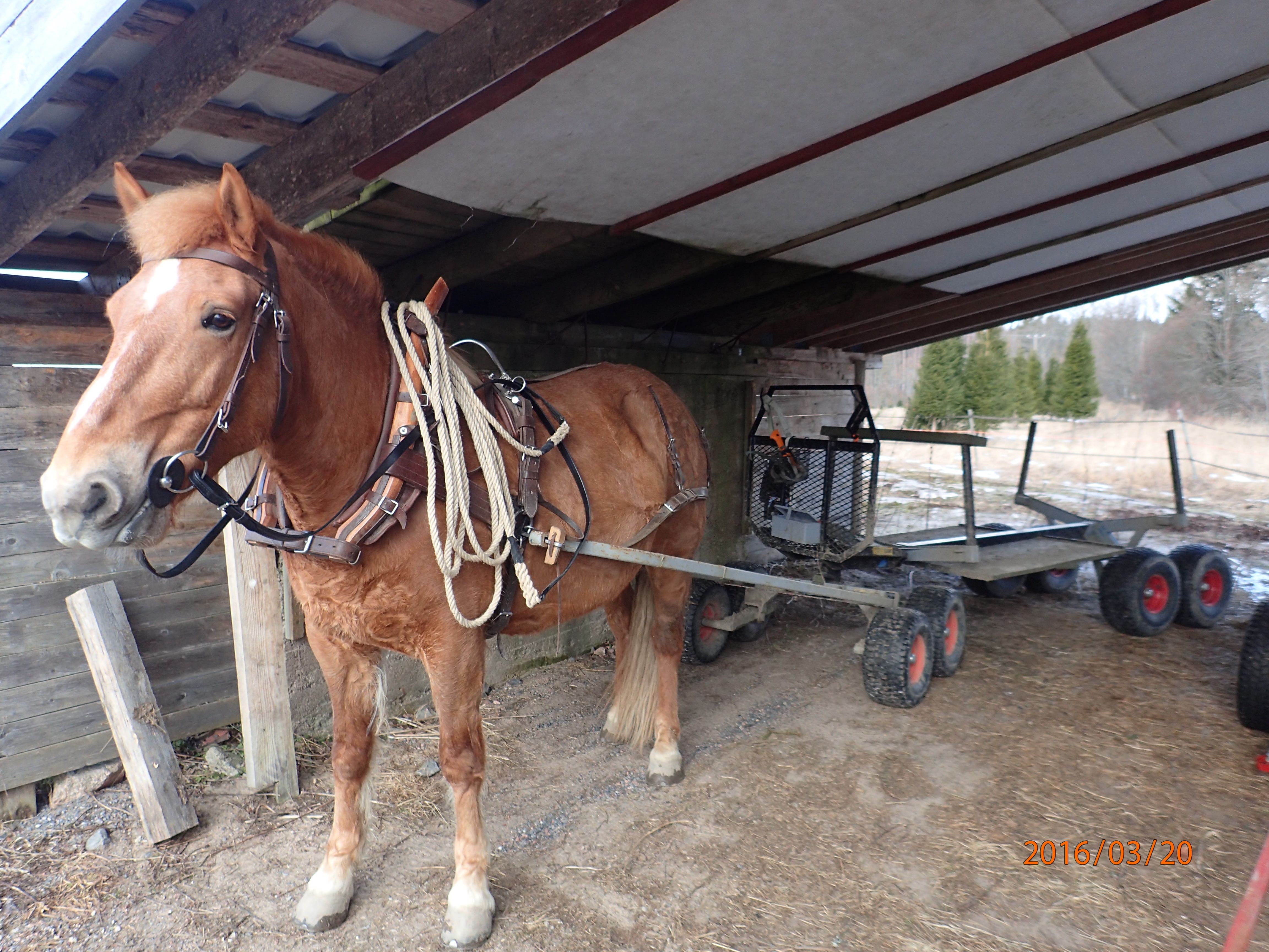 Donna on tilausvarsa ja tuli minulle 6kk vanhana. Kärryt pantiin perään, kun hän oli vuotias. Ensimmäisellä kerralla vaimoni oli liinamiehenä, ja toisella kerralla n.200 metriä, jolloin lähetin vaimon kotiin kahville. Donna osasi lähes kaiken itsestään. Epäilen,että se opiskelee salaa yövalon loisteessa hevosoppaita,koska se osaa kaiken opettamatta.